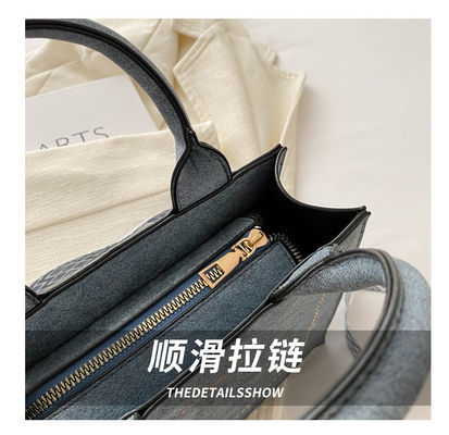 • 빈티지 시카스 텍스처 글자 토테 가방 여자 가방 2024 새로운 대용량 패션 핸드백 넓은 스트랩 어깨 가방