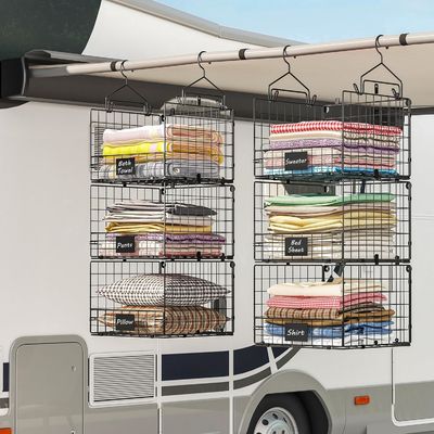 • 벽에 장착 & 캐비닛 & 매달기 저장: 2 가지 견고한 큰 매달기 갈고리를 제공, 당신은 옷장 막대 또는 옷 막대에 바구니를 매달기 위해 사용할 수 있습니다. 선택적인 벽에 장착 디자인,장착된 하드웨어와 함께 벽에 쉽게 장착됩니다.게다가, 당신은 평평한 표면에 그것을 사용할 수 있습니다, 같은 숙소, 욕실, 침실, 옷장, 침대 아래, 차고, 또는 창고,작은 공간에 저장하는 데도 좋습니다.. 1.65 인치 지름까지 표준 옷장 막대 / 막대에 꽂습니다.